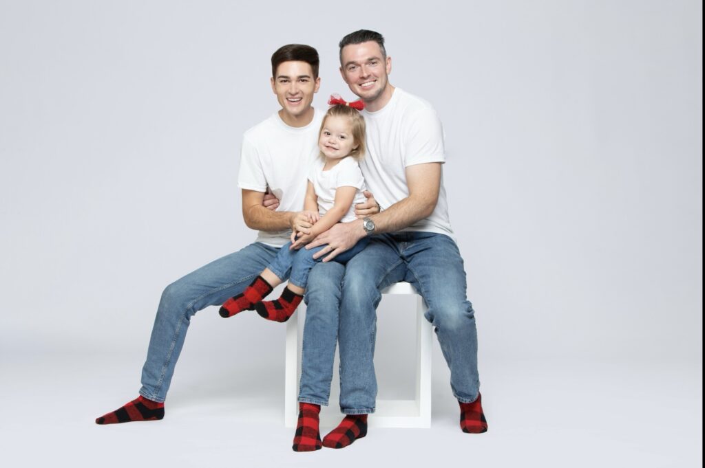 Hello, we’re Scott and Micah. Thank you for taking the time to get to know our family. Our life together is filled with laughter, love, and stability, and nothing brings us more joy than being parents to our bright and spirited three-year-old, Clara. Scott is a small business owner and dance teacher who loves helping others grow, while Micah works in the corporate world as a trading operations specialist who brings calm and steadiness to everything he does. We love traveling, boating, skiing, and exploring new places, as well as spending cozy moments at home with our poodle, Harold, and our mini dachshund, Berniece.